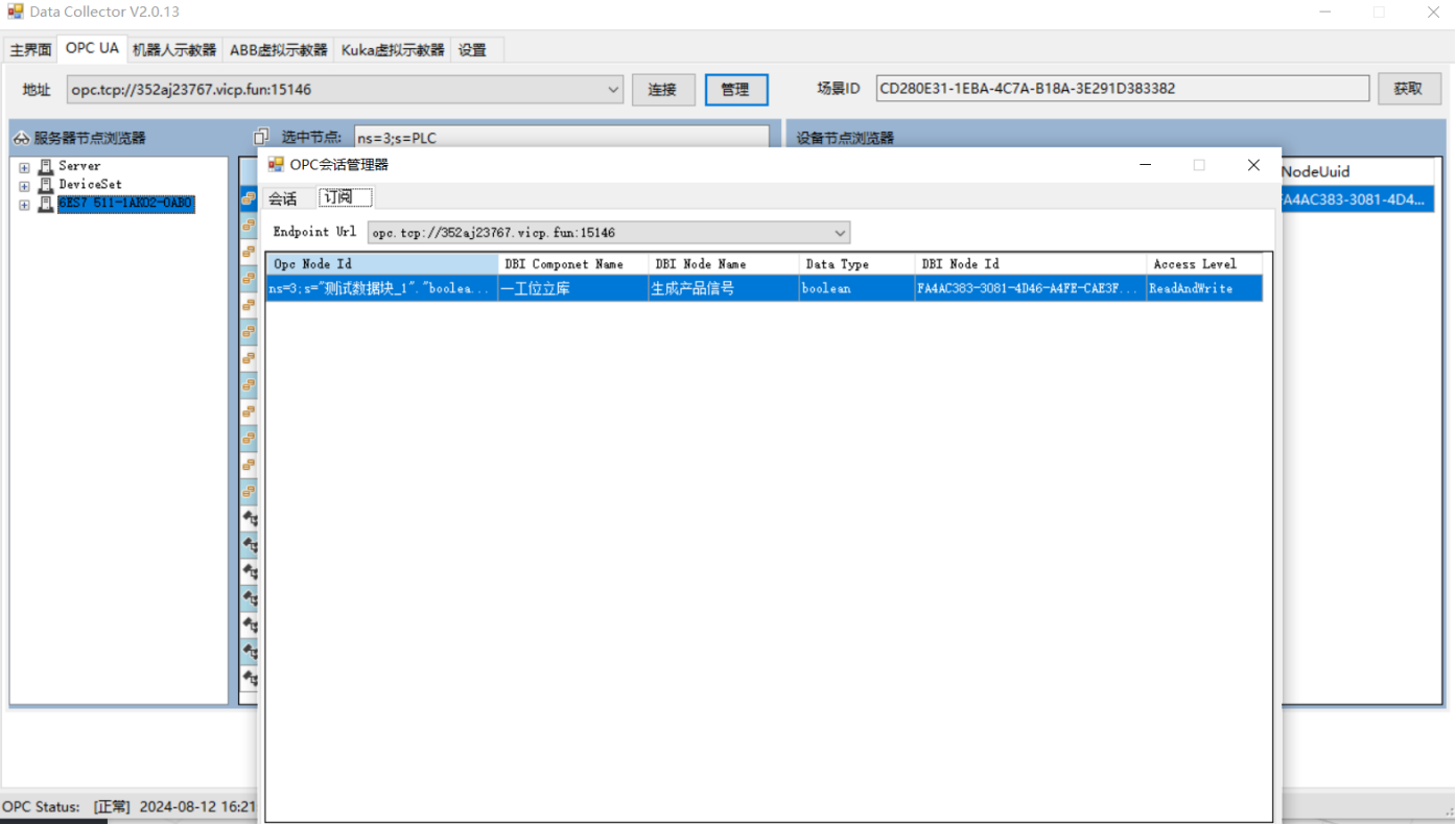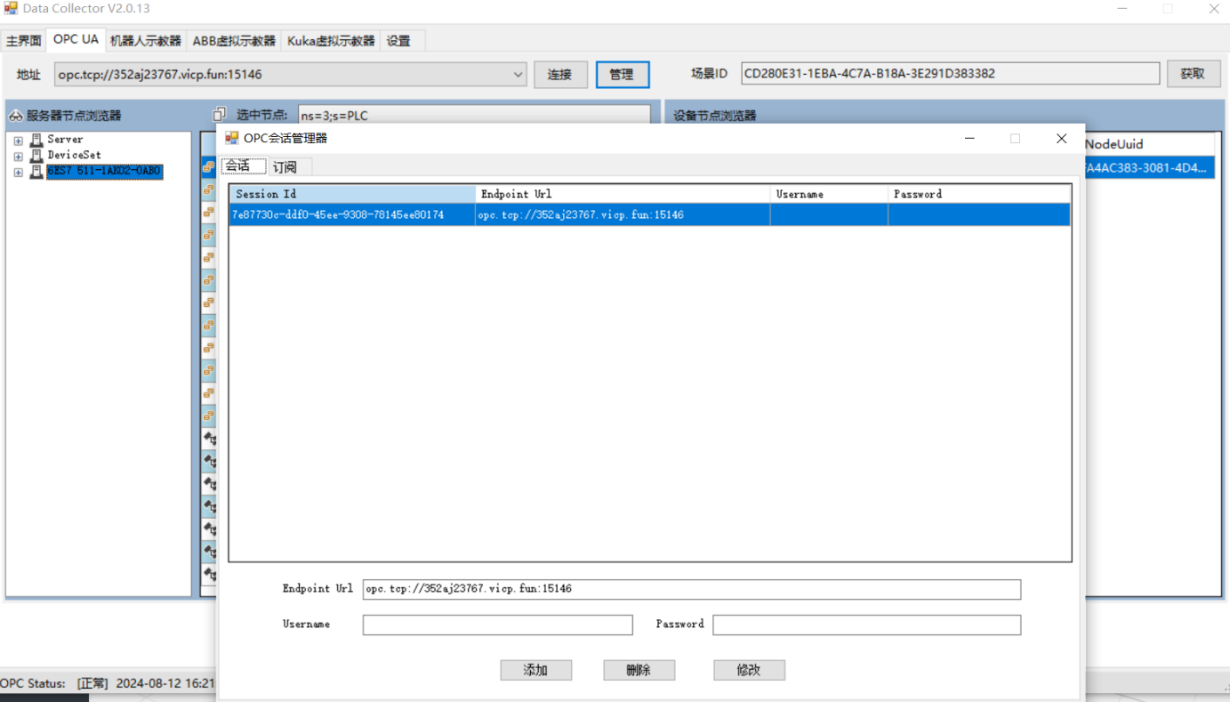 点击管理,在会话里可以修改、添加、删除opc地址