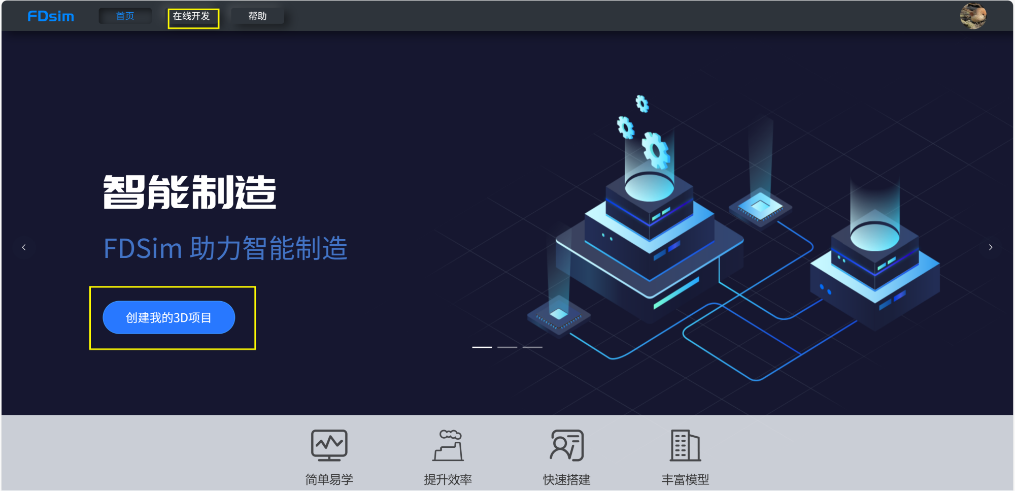 登录成功后,点击“创建我的3D项目”或者“在线开发”进入项目列表。