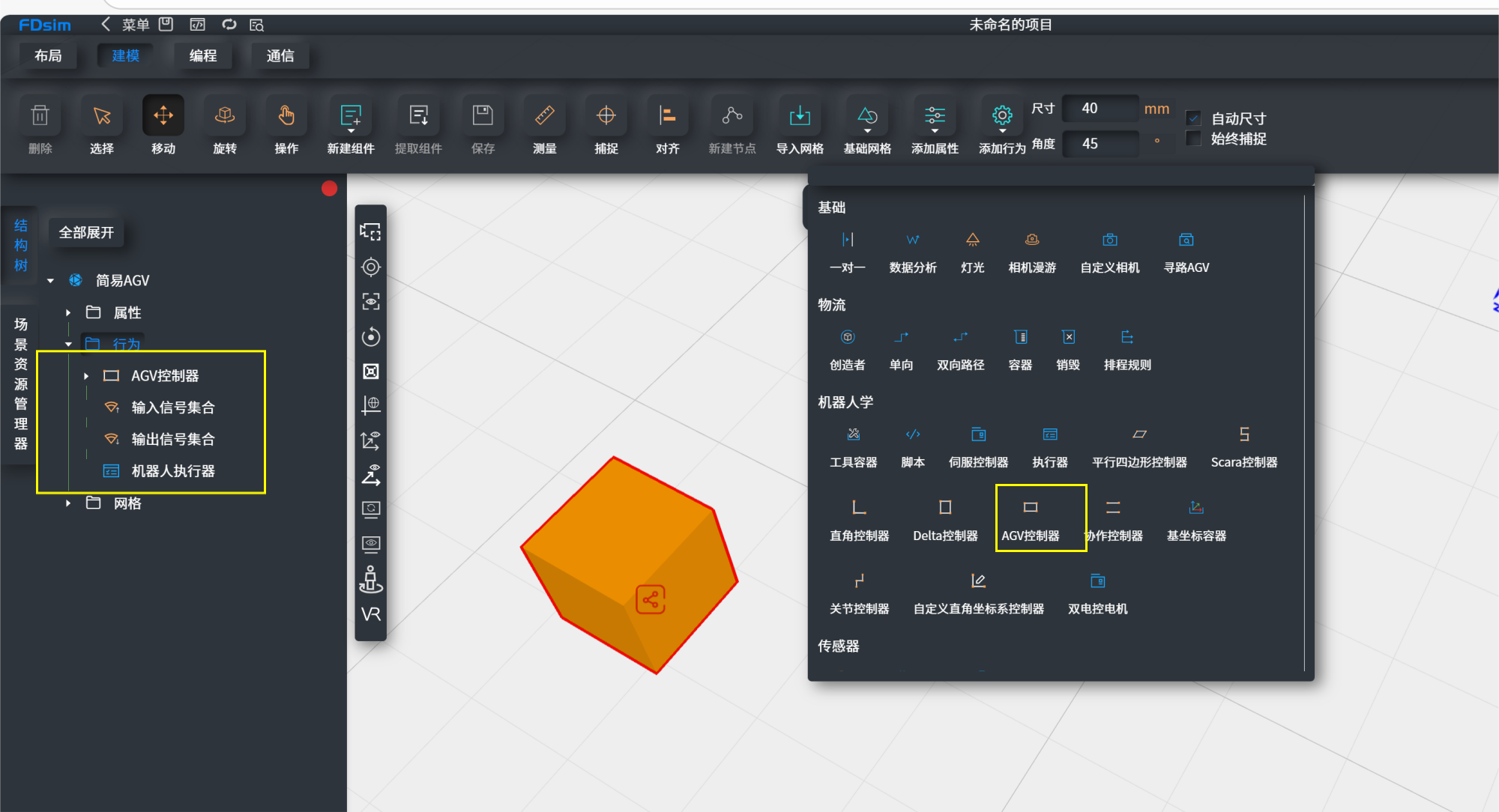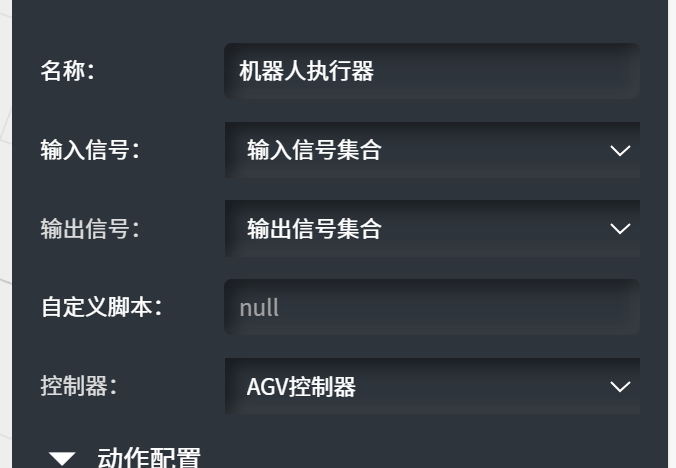 1.为组件完成机器人设置,且此处机器人控制器设置为AGV控制器,且设置为程序控制。和其他机器人引用,需要在机器人执行器中完成设置。