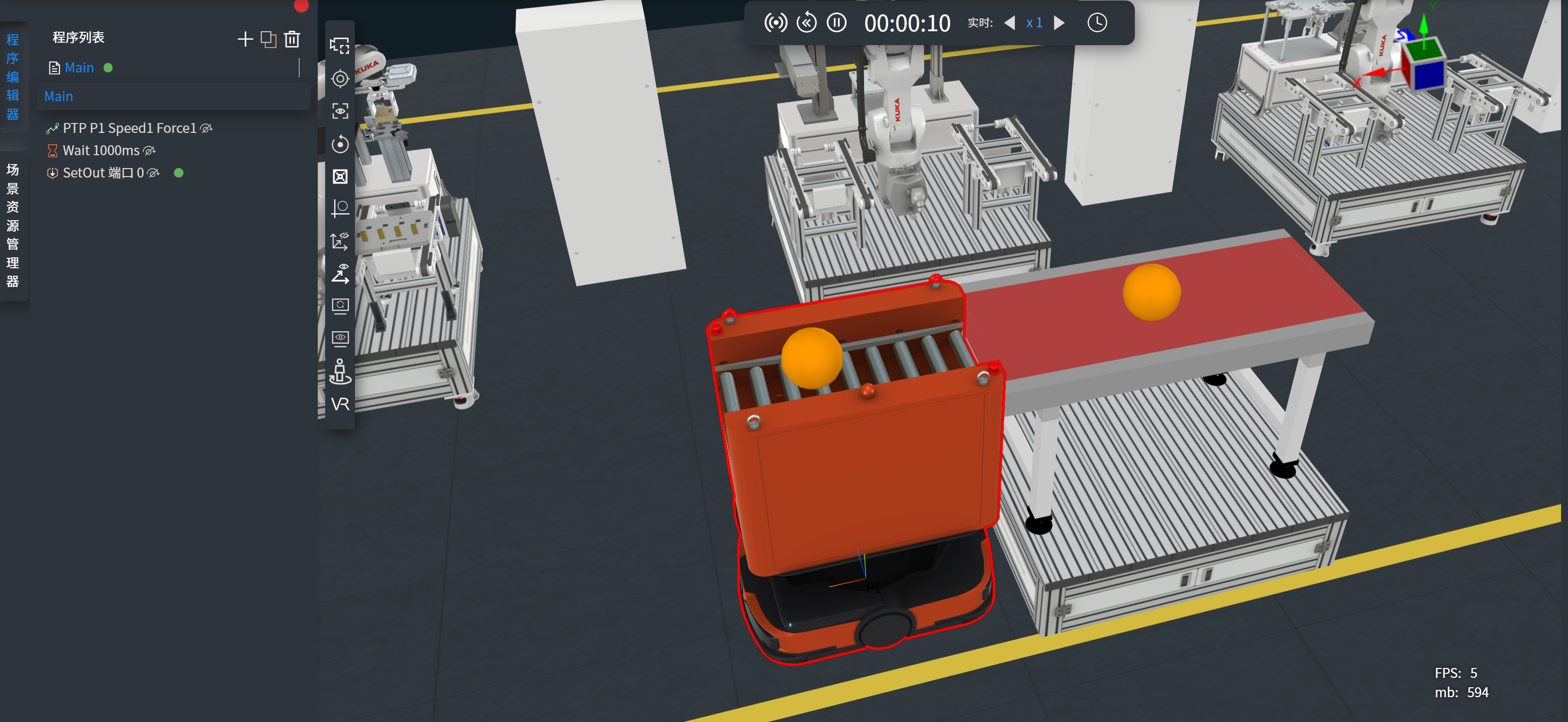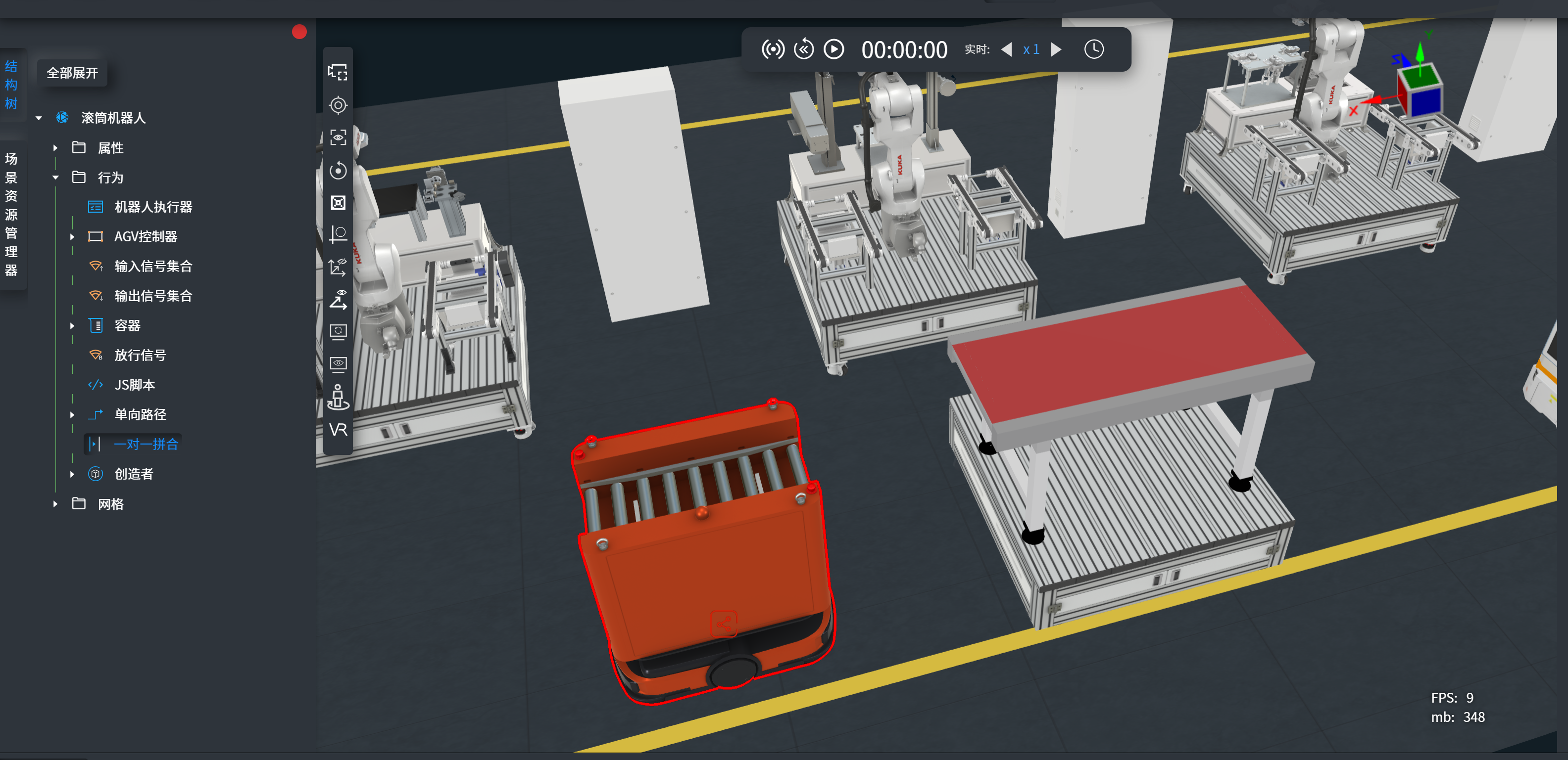 1.AGV采用AGV控制器程序控制方式控制,且需要设置有物料流。(如此处单项路径)