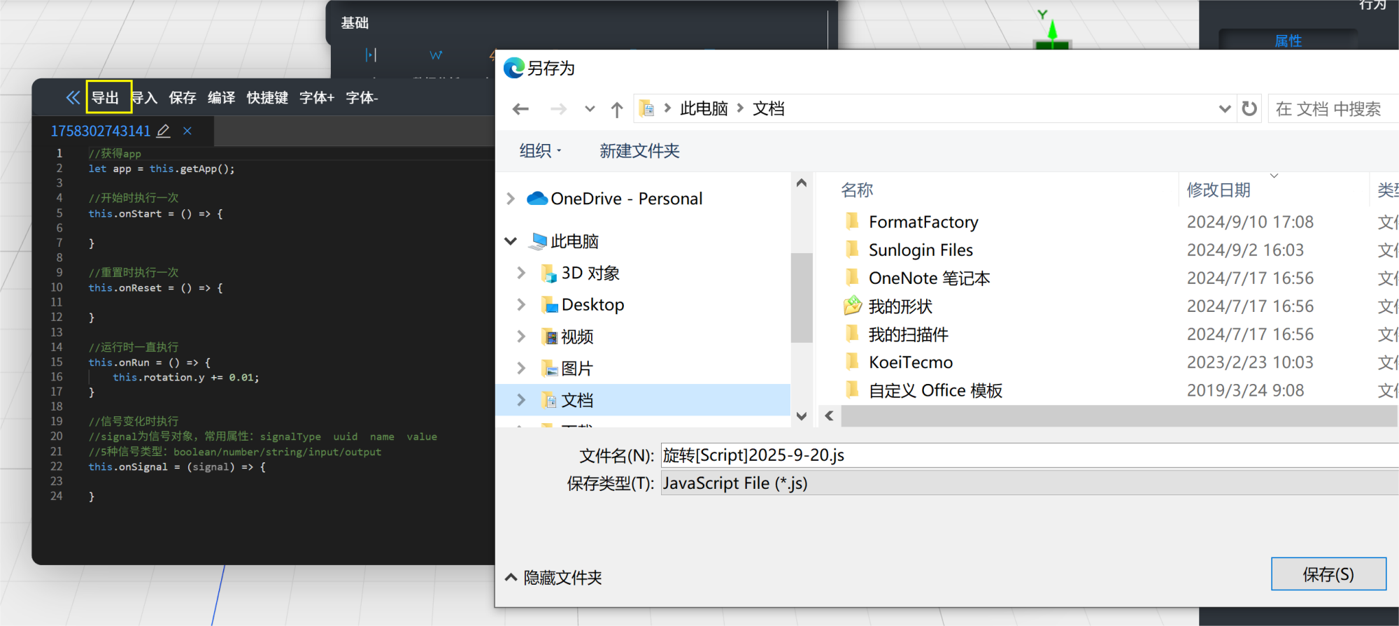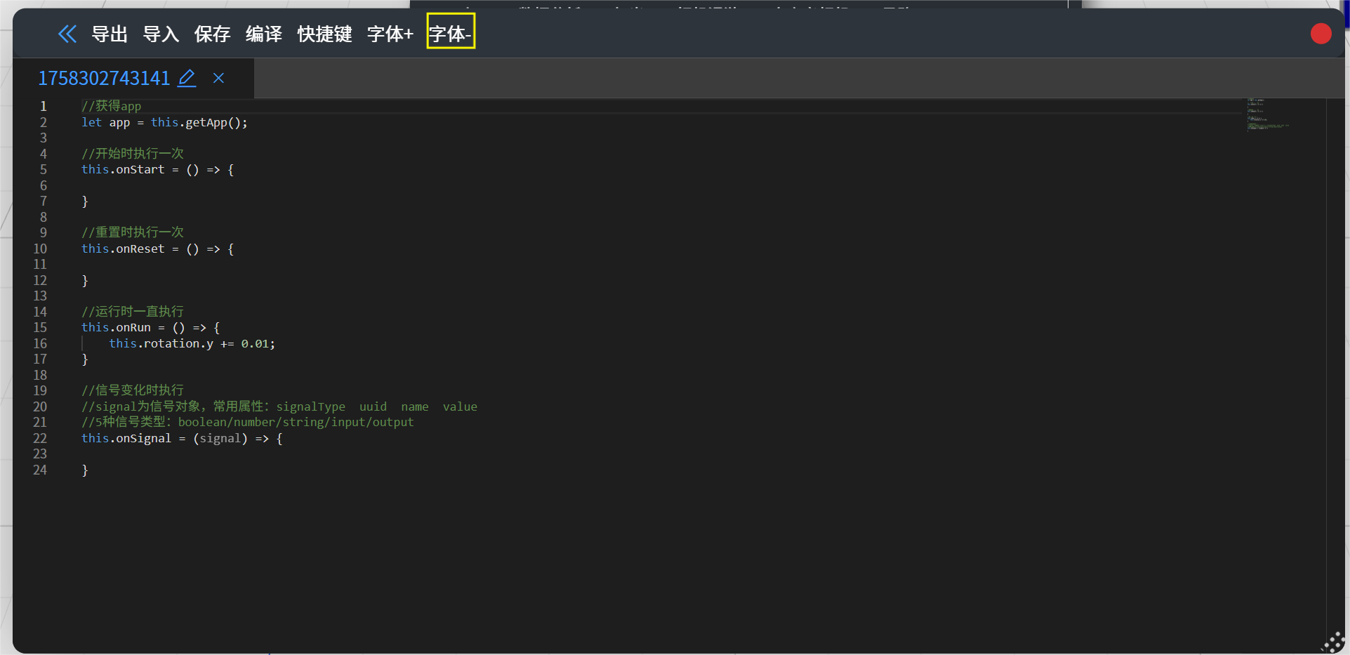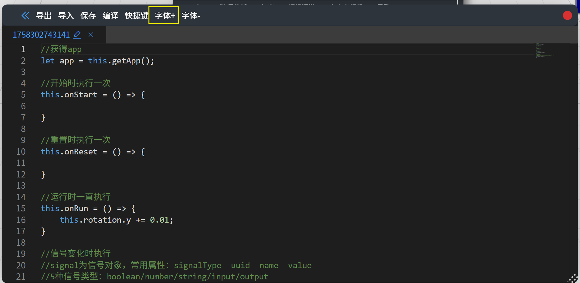 为组件添加脚本,可以实现脚本功能。脚本基于js语言运行。脚本中存在基础设置,可以在用以确定脚本运行的时间。