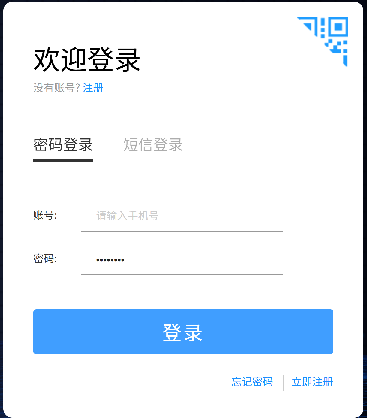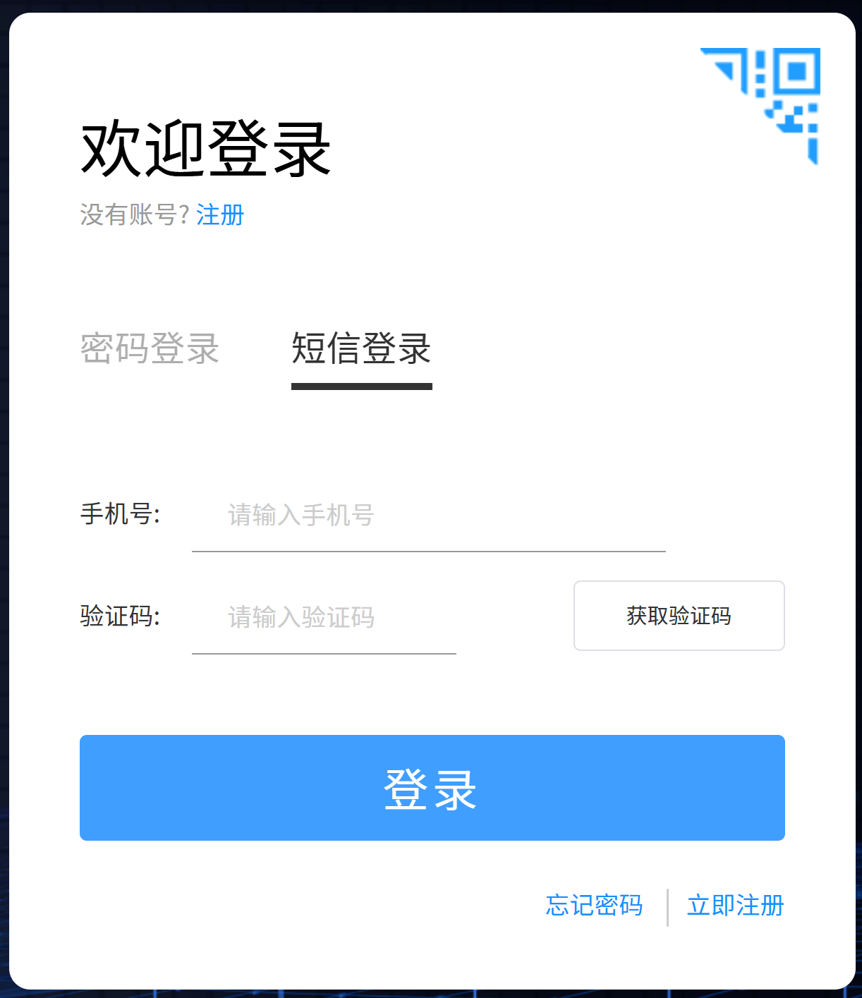 选择短信登录,则可以通过获取短信验证码登录平台。